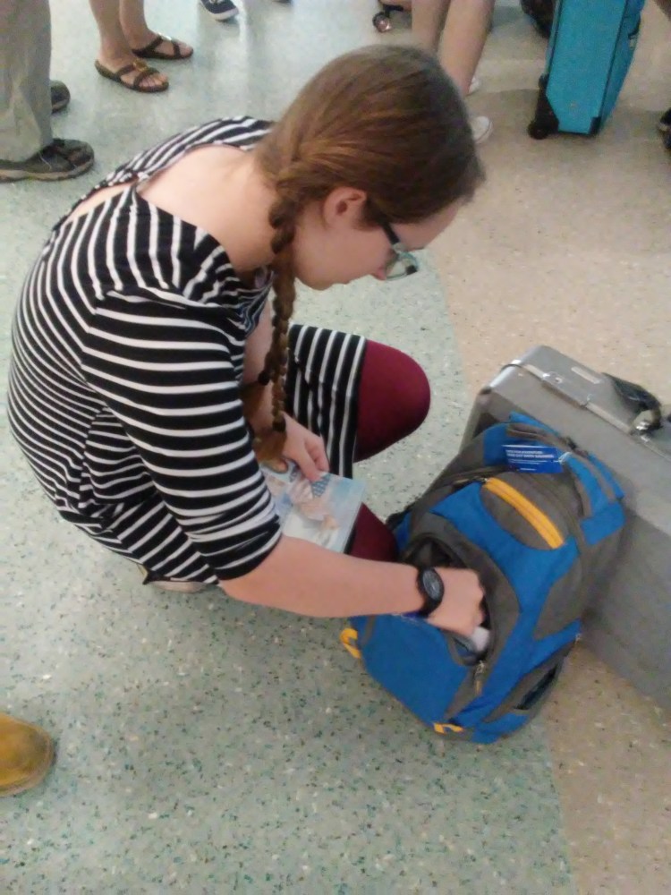 There was a slight upset to plans shortly after we left the teens at the airport. The airlines had overbooked the flight and could not get everyone on the plane. Some of them—seven, if I remember correctly—had to stay in town overnight and wait for another flight while the others went on ahead. They did not go back to their homes, but stayed with their chaperones. The group that had taken the earlier flight waited for them in Maine, and they drove together into Canada when they had all arrived safely in Maine. (My daughter fell in love with Maine, by the way.) 🙂