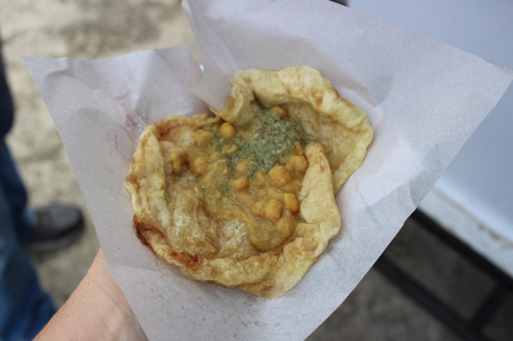 At lunchtime, we stopped at a roadside vendor for doubles. I’m not sure why they are called “doubles,” but I saw them for sale pretty much everywhere we went. We were given two pieces of roti, about the size of a tortilla. On top of the roti the lady placed a mound of cooked chick peas in a light sauce. Then she had other things she could add to it. Kawal told her only to put one other item on the doubles, as he does not like all the “extras.” I have no idea what the other thing was, but it tasted amazing! We stood there and ate at the vendor’s booth, washing our doubles down with carbonated beverages. Pat got a banana drink, and mine was mango. I don’t remember what Kawal had to drink.