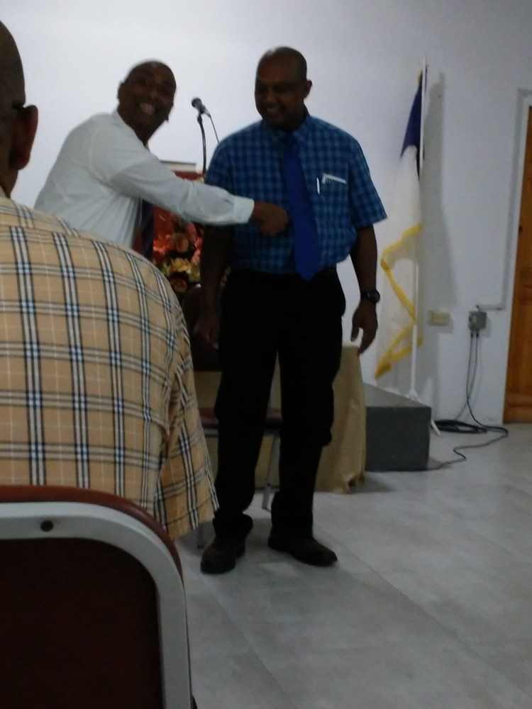 We eventually made our way back to the church, where we quickly discovered a horrible mess in the sanctuary. While Kawal is careful to lock the back rooms of the church, where we live, he never locks the sanctuary. People are always welcome to come in. People, yes—but not dogs. I remembered that I had left the door open because we were not quite ready to leave yet. But obviously none of us remembered to close the door, and Rusty got inside and wreaked havoc. He is only three months old, and he did what puppies do. He pulled Kawal’s Bible down off the chair and scattered both it and the contents of his Bible case (which had been left open). There was a box of assorted items sitting in the back of the sanctuary. That box had been upset and emptied all over the floor. I also discovered a pool of yellow water near a floor-model fan in the back. We all worked to clean up the mess, and Pat got out the mop to wipe the floors when the debris was removed.